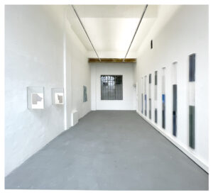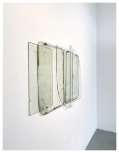 In einer Serie ihrer „glass works“, die ihr Schaffen der letzten Jahre stark geprägt hat, verwendet die Künstlerin unter anderem gebrauchte Autoscheiben aus über 60 Jahre alten Fahrzeugen. Mit neuen Arbeiten dieser Serie, die für ihre Soloschau in Schwerin entstanden sind, schließt sie jetzt diesen Zyklus ab.
